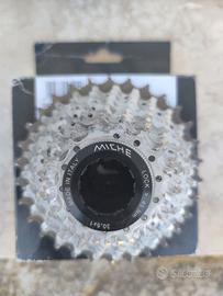 Vendo cassetta pacco pignoni per corpetto Shimano Miche Primato Ligth rapportatura 14/30 usata per mezza stagione, adatta alla categoria Allievi strada. Disponibili 2 pezzi, il prezzo si riferisce a una singola cassetta.