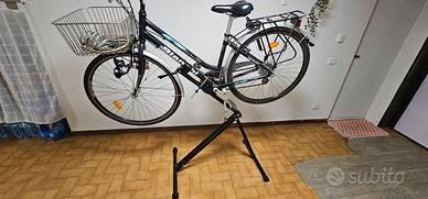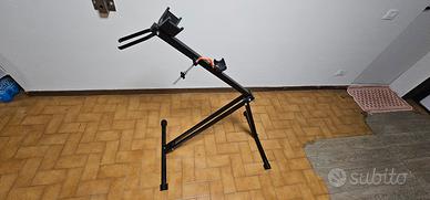 cavalletto per eseguire manutenzione alle biciclette e mtb,dotato anche di leve x bloccare la ruota posteriore. Richiudibile per portare via meno spazio possibile.