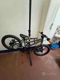 Cavalletto per bici sia per manutenzione che per rimessaggio. Puo tenere due MTB per adulti. Prodotto praticamente nuovo. Molto stabile e con probabilità di regolare l’inclinazione dei supporti per avere la bici sempre nella posizione corretta.