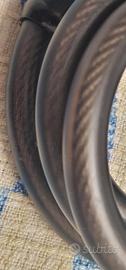 Vendo cavo antifurto per bicicletta con diametro di 12 mm e lunghezza utile di 120 cm, ideale per garantire una sicurezza superiore grazie alla sua elevata resistenza. Realizzato in acciaio di alta qualità, questo cavo metallico spesso offre la robustezza necessaria per lasciare il proprio mezzo all'aperto in totale tranquillità. La sua lunghezza generosa assicura una flessibilità eccellente, rendendolo adatto a una vasta gamma di situazioni di installazione complesse, permettendo di assicurare agevolmente il telaio e le ruote a pali o rastrelliere. Il cavo è interamente rivestito da uno strato liscio di PVC nero, che svolge una doppia funzione: protegge l'acciaio da pioggia, ruggine e ossidazione, prolungandone la durata nel tempo, e al contempo evita graffi o danni accidentali alla vernice della bicicletta. L'utilizzo è estremamente intuitivo: grazie al design ad anello tipo Cobra, basta far scorrere un'estremità attraverso l'oggetto da bloccare e riavvolgerla per formare un ciclo chiuso sicuro. Estremamente versatile, questo accessorio in colorazione nera è perfetto non solo per biciclette, ma anche per proteggere moto, scooter e skateboard elettrici. Un componente essenziale, leggero da trasportare e resistente, progettato per chi cerca una protezione affidabile e pratica per i propri spostamenti quotidiani o per le attività all'aperto.