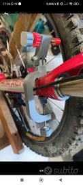 Rimane comodamente nella cassetta attrezzi senza occupare spazio, si adatta al 99% delle forcelle e dei carri. Un solo attrezzo per fare tutto senza smontare la ruota per un centraggio veloce o fuori casa, facile da usare.