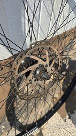 Vendo coppia cerchi per mountain bike da 27,5 pollici, una è gommata e con pignoni presenti, Entrambi hanno disco freno incluso. Vendo come ricambi.