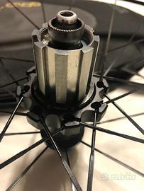 vendo coppia ruote carbonio CECCHINI TEAM Tempory-m2 corpetto campagnolo 11 speed, usate 1 volta profilo 44 per tubolare