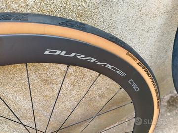 Vendo cerchi shimano dure ace c 50 come nuove. Pronte all uso. Copertoni tubless ready continental gp5000. Cassetta dure ace