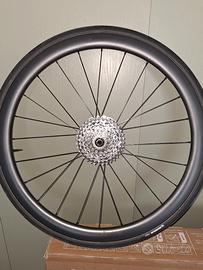 Vendo cerchi carbonio marca most, mozzi vision, freno a disco, altezza cerchio 40mm, dischi da 160mm, tubless con copertoni seminuovi.