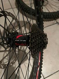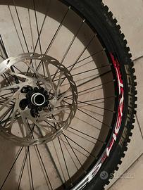 Completi di mozzi Fulcrum in perfetto stato, dischi freno da 203 mm, cassetta 10 rapporti da downhill, gomme magic Mary (anteriore) e minion dhf st (posteriore) al 60%.