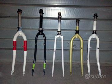 Vendo inoltre forcelle per bici da 26” in perfette condizioni e tutte complete di serie sterzo a cuscinetti a 15 euro l’una.