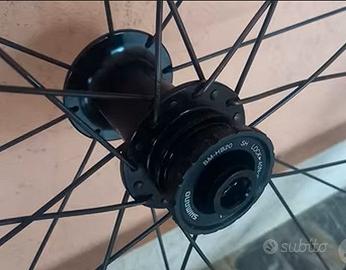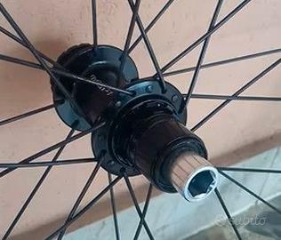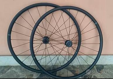 Come da oggetto, vendo coppia di ruote in alluminio, adatte a copertoncini a camera d'aria o tubeless, con mozzi Miche, corpetto SRAM XDR ed attacco rotori dischi freni center look.