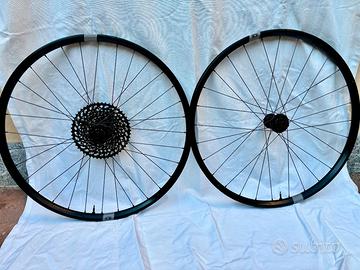 Vendo Cerchi CRANBROTHERS SYNTHESIS XCT I9 ALLOY compresi di pacco pignoni SRAM GX 10/50. I cerchi e pacco pignoni hanno percorso meno di 1500 km e sono in condizioni perfette. I cerchi nascono già nastrati e con valvola per tubeless. Dettagli: - WHEEL SYNTHESIS ALLOY XCT XCTI9 29 FRONT 15X110 BOOST OE - WHEEL SYNTHESIS ALLOY XCT I9 29 REAR 148X12 BOOST XD OE - PACCO pignoni SRAM GX 10/50. •Sistema di ruote anteriore e posteriore in lega regolate per corse e gare XC. •Ruote anteriori e posteriori appositamente messe a punto e ottimizzate per soddisfare i requisiti di prestazioni e i carichi specifici per le uscite in mountain bike. •La ruota anteriore si presenta elastica, il che migliora la maneggevolezza e massimizza l'aderenza e il controllo in curva. L’ampia larghezza del cerchio supporta un profilo dello pneumatico maggiore davanti, volume e superficie d’appoggio maggiore e profilo dello pneumatico arrotondato per migliorare la sterzata. •La ruota posteriore più rigida supporta i picchi di carico e migliora la stabilità e la traiettoria in velocità. Il cerchio interno più sottile supporta pneumatici dal profilo più stretto posteriormente, migliora la resistenza al rotolamento e perfeziona il bordo dello pneumatico migliorando l'aderenza. •Giunto del cerchio saldato e rivestito per maggiore robustezza