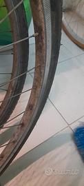 Cerchi da 28" con mozzi marchiati Legnano. Montavano su di una condorino. Cerchi con visibili segni del tempo, ma ancora utilizzabili.
