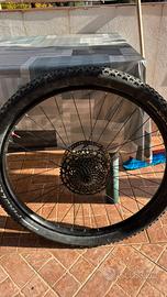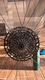 Cerchi trek Bontrager per E-Bike canale interno 35 con dischi 203mm tubless ready. Pacco pignoni Sram NX 12v in ottime condizioni corpetto Shimano con cuscinetti appena sostituiti. Gomme Pirelli al 50% ant. S al post. M