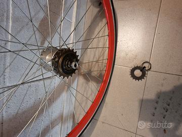 vendo cerchi fixed rossi da 28 completi di 3 coperture michelin ruota libera e fissa unica cosa da far sistemare perno ruota posteriore 70 euro ritiro a mano