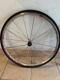 Coppia di cerchi fulcrum racing 1 silver per copertoncino con corpetto campagnolo. Montati con tubolari per copertoncino tufo clincher hi composite carbon 25mm usati 2 volte e pacco pignoni in ergal 12-27. Solo consegna a mano. Vendo per inutilizzo.