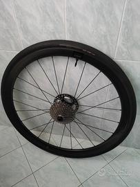 vendo per inutilizzo cerchi in carbonio ad alto profilo ( 36cm)in ottime condizioni complete di disk e ruota libera 11-34 tubless