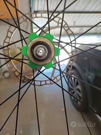 cerchi MTB mavic 27,5/ freni disco da 180 nuovi mozzo anteriore 15/100 mm posteriore 135mmqr perno passante 1,5 larghezza cerchio 2,5mm.