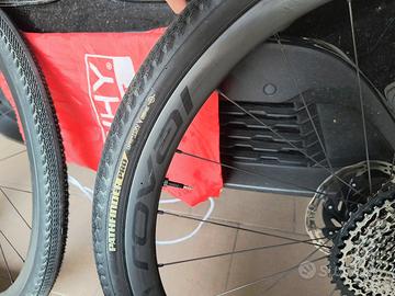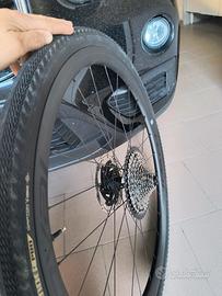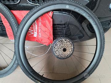 Cerchi in carbonio Specialized Roval Terra CL mozzi dt swiss 350 e corpetto sram xdr..cerchi in ottimo stato tranne cerchio posteriore come da foto presenta uno striscio lieve su un lato su tutta la circonferenza del cerchio che ne compromette a livello estetico ma non strutturale per questo il prezzo è ridotto rispetto il suo valore..venduti senza pacco pignoni e dischi ma volendo con i copertoni