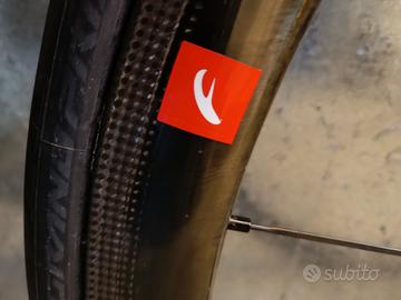 coppia di cerchi ruota in carbonio, in perfette condizioni, vendo senza copertoncini, compreso pacco pignoni Shimano DURA ACE 9100 rapporti 11/28 al posteriore. Rim brake (adatti freni a pattini).