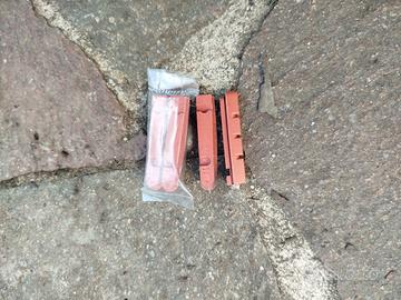 Cerchi Giant P-A2 in alluminio con pignoni Shimano 105 per freno a cerchio, piattini freno, spiedini,catena e due coppie di pattini per cerchi in carbonio marca elitewheels nuovi in quanto troppo spessi per la mia bici.
