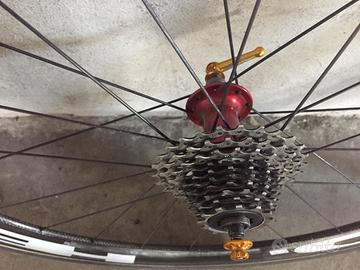 Copia cerchi carbonio 60mm posteriore 40mm anteriore Tubolare nuovo posteriore Vittoria élite Possibilità di avere sganci rapidi leggerissimi e pacco pignoni durace da 10v Prezzo trattabile