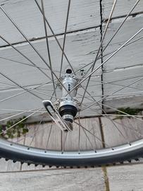 cerchi mtb 26" con mozzi SACHS marchiati coda. quick release marchiati SACHS. Cerchi Rigida. gomme Schwalbe. la ruota libera è da registra ha un piccolo gioco.