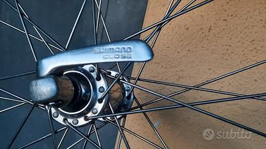 Cerchio Ambrosio Evolution da 28 pollici, mozzo Shimano 105 leggermente macchiato su un lato.