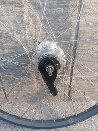 Cerchio Ruota posteriore 28 Completa Adatto a Tutti i tipi di biciclette come City Bike, Biciclette da Passeggio, Trekking, Cicloturismo, Tandem 2 o 3 posti, Biciclette Vintage a Tamburo, Uomo, Donna, Progetti Vari ecc ecc Davvero Ottima fattura. Molto Affidabile. È così allestito - Mozzo Sturmey Archer 36 Fori Freno a Tamburo integrato Pignone 3v 3 Marce Integrate Davvero Molto Robusto - Cerchio Alluminio V Profile da 28 pollici 700C (622) 36 Fori colorazione nero Opaco Il Profilo a V con questa sua geometria è progettata per migliorare l'aerodinamica fendente l'aria con meno resistenza e aumentare la rigidità strutturale della ruota. Monta Raggi 13g Acciaio Davvero Spessi Usato Saltuariamente nell'arco di un anno paio di anni, ci avrò girato una 20ina di volte per brevi tratti. Ottime condizioni come da foto. Cedo causa cambio progetto 130 euro (pagato 230 euro). Non trattabili. Consegna a mano in Torino Pagamento contanti Spedizione Voluminosa e Laboriosa per quanto riguarda L'imballaggio (preferirei non spedire), ma se proprio richiesto la spedizione costa 20 euro tramite Poste Italiane con tracciabilità. Pagamento su Spedizione Bonifico Istantaneo. No Offerte Non Spedisco tramite TuttoSubito. Grazie Ho a disposizione altri ricambi Per Bicicletta Anche vintage, antichi per Eroica, Corsa, Campagnolo, Maino, Cerchio Ruota Single Speed, Mountain bike MtB, catena antifurto, ed altro sui miei annunci di Subito.