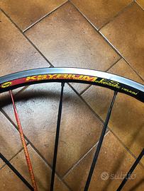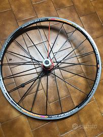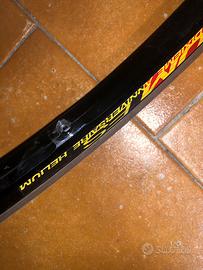 Cerchio rotto, completo di tutti i raggi tranne 1 , mozzo perfetto senza corpetto, piste molto belle, lieve crepa nell’attacco del raggio come si puo’ notare in foto. I raggi sono perfetti, (ne manca uno).