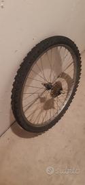 cerchio completo ruota 24 pollici per mountain bike. il cerchio è dritto e ottime condizioni. camera d aria ok copertura consumata. il prezzo è meno di metà costo del cerchio nuovo .