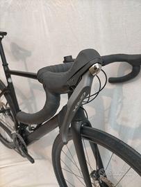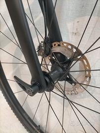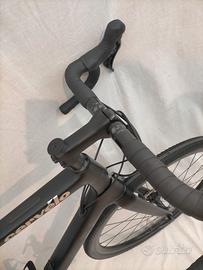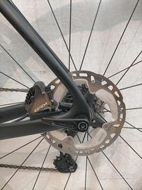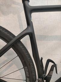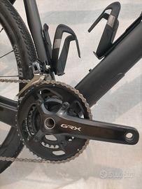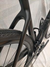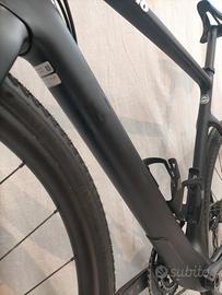 Montaggio quasi come da catalogo con gruppo Shimano GRX RX810 2x11 (corone 48-31T, cassetta 11-32t), freni a disco idraulici GRX RX810, ruote DT Swiss Gravel LN, reggisella e manubrio Easton in carbonio, copertoni Specialized Pathfinder 700x38 TLR seminuovi.