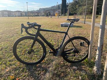 Cervelo R5, taglia 56. Gruppo completo NUOVO Shimano Ultegra DI2 12V. Pedivelle 172.5. Guarnitura 36/52. Pacco pignoni 11/34. Ruote Carbonio Space Carbon WS41. Trittico Cervelo. Condizioni ottime. Grazie
