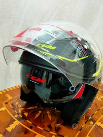 Casco cgm tg L open face con doppia visiera( scura/trasparente) nuovo mai neanche provato. Regalo alletta gialla del valore di 30 euro, scatola originale con un po di scotch ma non influisce nel casco.