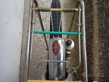 Ciclo Piave pieghevole simil Graziella Carnielli , con ruote grandi da 24". Tutta originale, marchiata su fregio canotto, carter e pipa manubrio e con tutte le decal conservate su telaio e parafanghi. Freni e cerchi in alluminio, Universal e Ambrosio , gruppo luce Mondial ( dinamo faro e fanalino ), lucchetto Cigno , ghiere Ofmega , pneumatici Clement made in Italy in ottime condizioni, sella San Marco , campanello Comet .