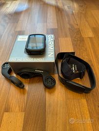 Vendo ciclocomputer Garmin Edge 540 bundle completo di tutti gli accessori, inclusa staffa per posizionamento su manubrio, fascia cardio, sensori cadenza e velocità, batteria come nuova, condizoni impeccabili.
