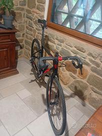 Bicicletta da ciclo cross convertibile gravel Parkpre modello MUD99, prodotto italiano, telaio100% carbonio taglia L (altezza ciclista da 170/175 a 185/190). La misura del telaio è la più grande fornita. Acquistata nuova nel 2023 ed utilizzata solamente da novembre a maggio 2024 da ragazzo di 14 anni.