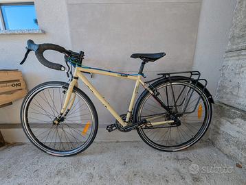 Cinelli Hobotleg - taglia S /49cm tubo verticale. Telaio Columbus Tutta oroginale Copertoni Vittoria Randeuneur 700x40 Aggiungo portapacchi anteriore. (Non in foto) Entrambi i portapacchi sono di portata 30 kg della Tubus. Su richiesta, a parte, o anche delle borse della MSC Mainstream impermeabili per cicloturismo. Come nuova usata poco, vendo perché io e mia moglie non andiamo più in bici. Qualsiasi prova. Disponibile a spedizione