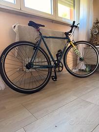 Vendo Cinelli Tutto Plus single speed / fixed gear, bici praticamente quasi nuova, usata pochissimo e vendo solo per inutilizzo. Acquistata da Sardicicli, molto leggera, scorrevole e perfetta sia per uso urbano che per chi cerca una bici dal look sportivo e pulito. Telaio blu con forcella originale bianca/gialla, copertoni Kenda, freni presenti e funzionanti, componenti ben tenuti e messe anche manopole originali Cinelli. Bici pronta all’uso, sempre tenuta con cura e in ottime condizioni.
