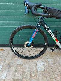 Gravel Cinelli Zydeco . Ottime condizioni . Usata prevalentemente su strada e su strade bianche . Taglia 56 (L) adatto per altezza 173-183. Gruppo Shimano Grx, telaio alluminio, forcella in carbonio. TELAIO: Alluminio FORCELLA: Carbonio CAMBIO: Shimano Grx 10V, 11-32T GUARNITURA: Shimano Grx, 46x30T, FRENI: Shimano Grx, Hydr. Disc Brake (160/160). Effettuato piccolo upgrade come visibile in foto con cambio cerchi Dt Swiss G 1800 Tubless Ready e dischi Shimano . Non spedisco. Ritiro Rimini e zone vicine . Formula visto e piaciuto .