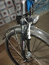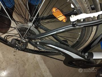 cedo bici in foto usata pochissimo, come nuova. dotata di portapacchi posteriore e altri accessori. cambio Shimano da 21, dinamo nel mozzo ruota anteriore per alimentazione luci. per ulteriori info e foto contattatemi ligo_robbie@libero.it o al 3392506775