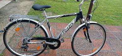 vendo city bike marca Atala 28 pollici in ottime condizioni, con forcella ammortizzata, sella nuova, fanali nuovi a pile, freni e gomme in ottimo stato, cambio Shimano a 6 velocità, telaio in alluminio, manubrio in alluminio regolabile.