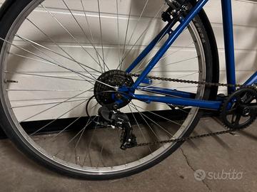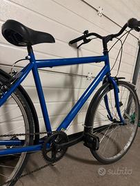 Vendo city bike blu a canna bassa/dritta, comodissima e pratica, adatta sia per uomo che donna. Perfetta per: * Spostamenti in città * Andare al lavoro o a scuola * Muoversi velocemente senza stress Caratteristiche: * 6 marce per affrontare salite e pianura * Telaio basso → facile da salire e scendere * Freni funzionanti * Gomme in buono stato * Parafanghi (utile anche con pioggia) * Campanello già montato * Pedali con catarifrangenti per maggiore sicurezza Bici comoda, scorrevole e pronta all’uso, ideale per chi cerca un mezzo semplice ma efficace per la città.