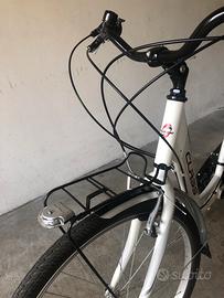 City bike donna marca Class. Diametro ruote 56cm. Cambio schimano xt 7v Luce anteriore a batteria. Pompetta nel portapacchi posteriore. Usata pochissime volte, praticamente nuova. Qualche minimo graffio sulla vernice del portapacchi posteriore.