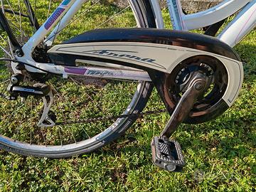 Bicicletta da donna marca Frera, in buone condizioni e perfettamente funzionante, usata pochissimo, doppio cambio Shimano, portapacchi frontale e posteriore, faro anteriore e posteriore. Vendo per inutilizzo. Prezzo trattabile
