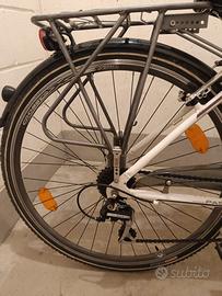Vendo per inutilizzo city bike donna comprata allo Sportler qualche hanno fa.....usata pochissimo....cambio 21 velocità schimano,cestino removibile con un click,forcella ammortizzata.....ruote da 28 e sistema a dinamo schimano su mozzo per illuminazione,portapacchi .Prezzo trattabile.