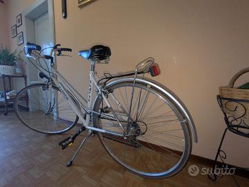 City bike colore bianco con cambio. Camera d'aria da sostituire