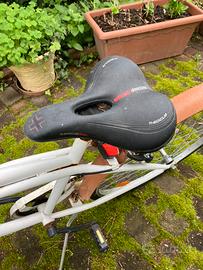 City bike Fausto coppi in buone condizioni, di colore bianco con parafanghi e manopole color caramello. .Completa di luce, cavalletto e campanello.