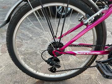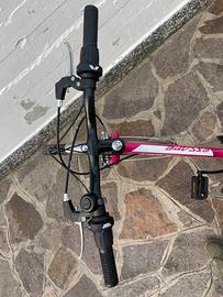 vendo bellissima bicicletta da bambina fino a 9/10anni . cambio shimano tenuta ottimamente usata putroppo veramente poco CAMBIO Shimano TY-21 LEVE CAMBIO Shimano Revo GUARNITURA 42/34/24 CASSETTA Shimano TZ500 / Index 7V FRENI V-brake Alluminio MANUBRIO Hi-ten RUOTE Alluminio COPERTURE 24″x1.75 REGGISELLA Hi-ten PESO 14,8 kg COLORE C003 BIANCO / C021 ROSA