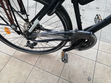 Vendo city bike Decathlon Hoprider 900 TG S Cerchi da 28,cambio Shimano Deore, doppio freno a disco idraulico, forcella ammortizzata. Condizioni ottime, vendo per passaggio a ebike. Prezzo leggermente trattabile.