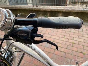 *🚲 VENDO CITY BIKE DONNA - PERFETTA PER LA CITTÀ** Vendo bellissima bicicletta da città in ottime condizioni, ideale per spostamenti urbani e tempo libero. **CARATTERISTICHE:** - Telaio step-through (accesso facile) colore bianco - Cambio Shimano per adattarsi a ogni percorso - Cestino anteriore in metallo nero incluso - Portapacchi posteriore robusto - Luci anteriori e posteriori per la sicurezza - Cavalletto laterale - Pneumatici in buone condizioni - Altezza seduta regolabile **CONDIZIONI:** Molto buone, ben tenuta e funzionante al 100% **IDEALE PER:** Spostamenti casa-lavoro, shopping, gite in città, tempo libero **ACCESSORI INCLUSI:** Cestino anteriore La bici è pronta all'uso e perfetta per chi cerca un mezzo pratico ed elegante per muoversi in città! SI PUÒ VEDERE E AQUISTARE SOLO SABATO E DOMENICA (11-12 APRILE 2026)