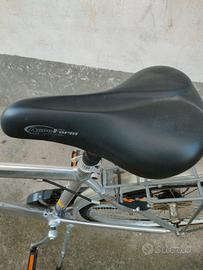 metto in vendita city-bike con cambio Shimano colore grigio chiaro in alluminio, è praticamente nuova usata davvero poco, ha le ruote da sostituire o solo camera d'aria per scarso utilizzo! Sistema frenante a posto! Sella ergonomica! diametro ruota 37-622(secondo misure ertro) oppure 700 per 35c(espresso in sistema metrico)!