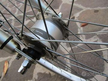 Cambio anteriore a 3 velocità e posteriore a 7 velocità entrambi Schimano, freni e pedivelle Schimano in alluminio. come il telaio, il manubrio e l'attacco manubrio; anche i parafanghi non sono della solita scadente plastica ma in robusto alluminio. La forcella e il cannotto reggi sella ammortizzati la rendono molto confortevole; ha la dinamo per le luci incorporato nel mozzo anteriore, viteria cromata o in acciaio inox ed altri particolari di pregio che la rendono imparagonabile ad analoghe bici più economiche.